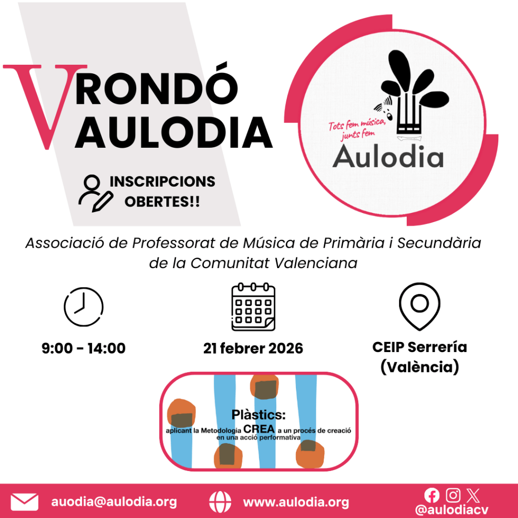 Vos esperem per continuar fent d’Aulodia un lloc on l’educació musical es pensa, es viu i es crea junts.