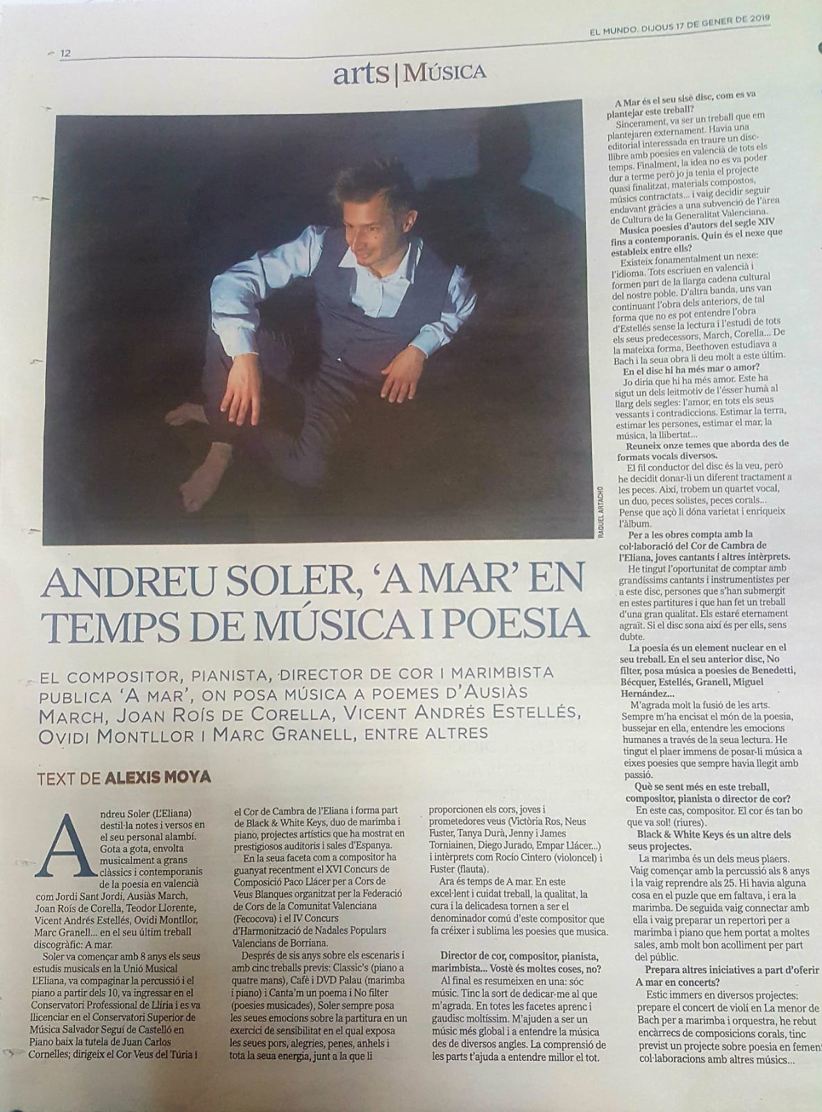 El joven músico valenciano Andreu Soler sigue con la promoción de su último trabajo «A Mar», un disco de poesía y música. ¿Quieres saber más? No te pierdas su entrevista en el periódico El Mundo