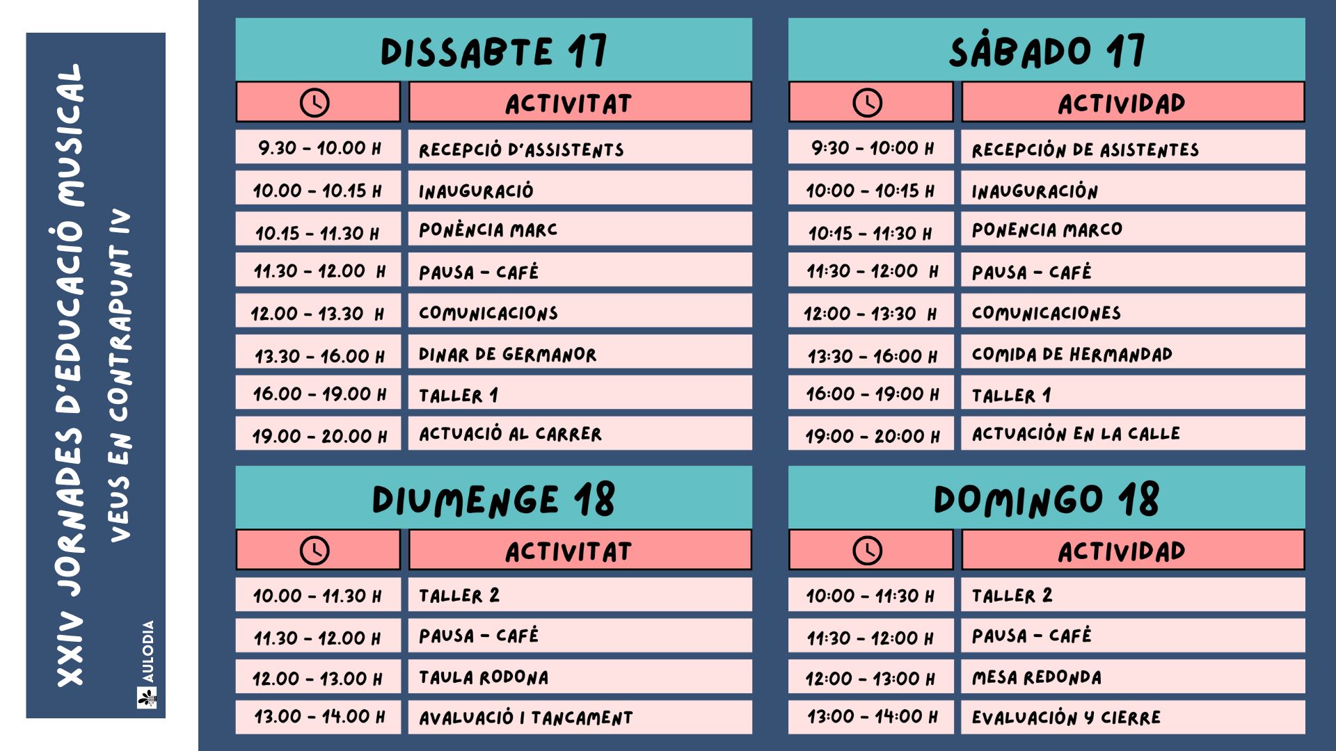 Les Jornades es realitzaran a la Casa del Fester de Benidorm els dies 17 i 18 de setembre de 2022 en el següent horari: